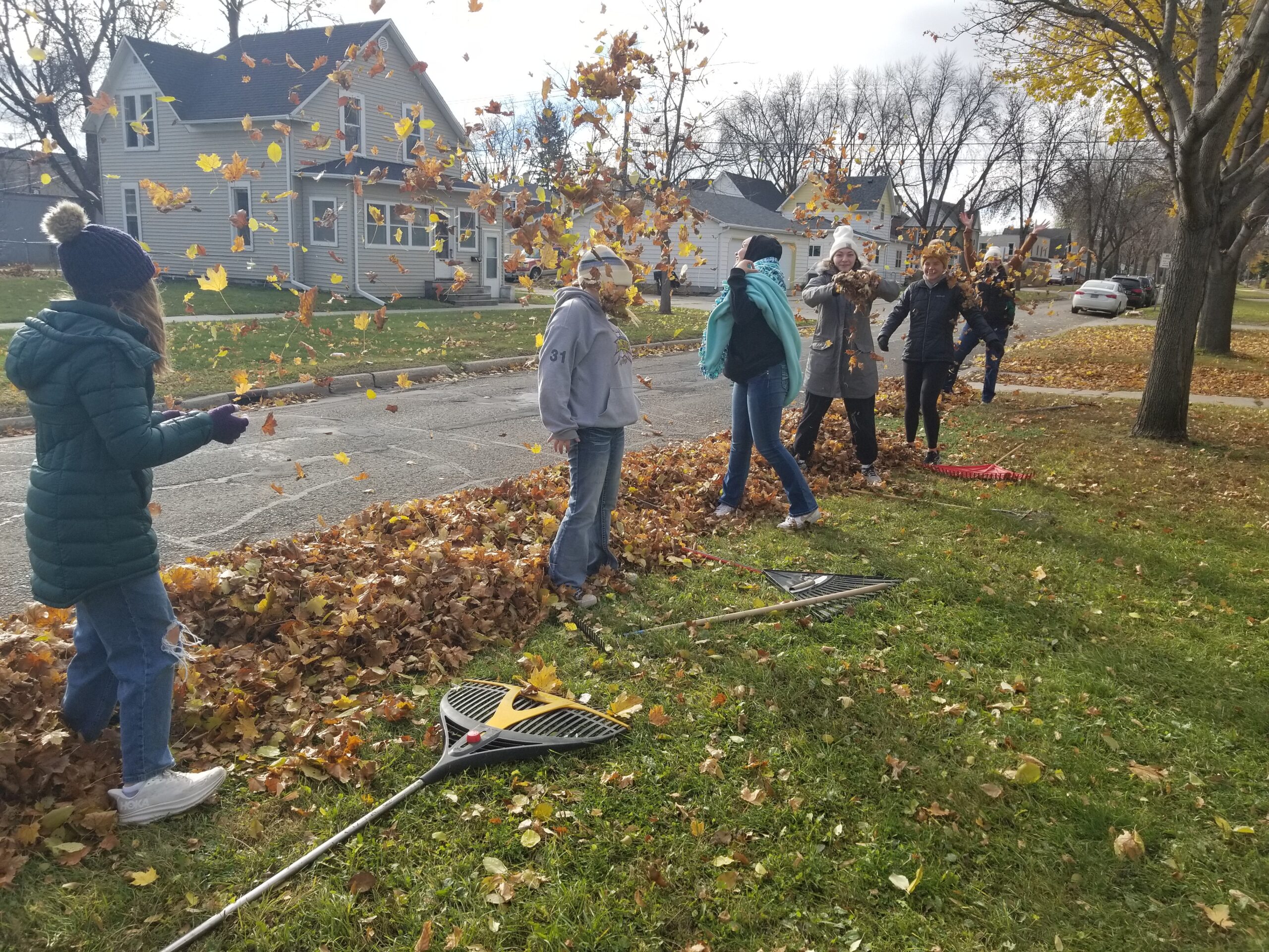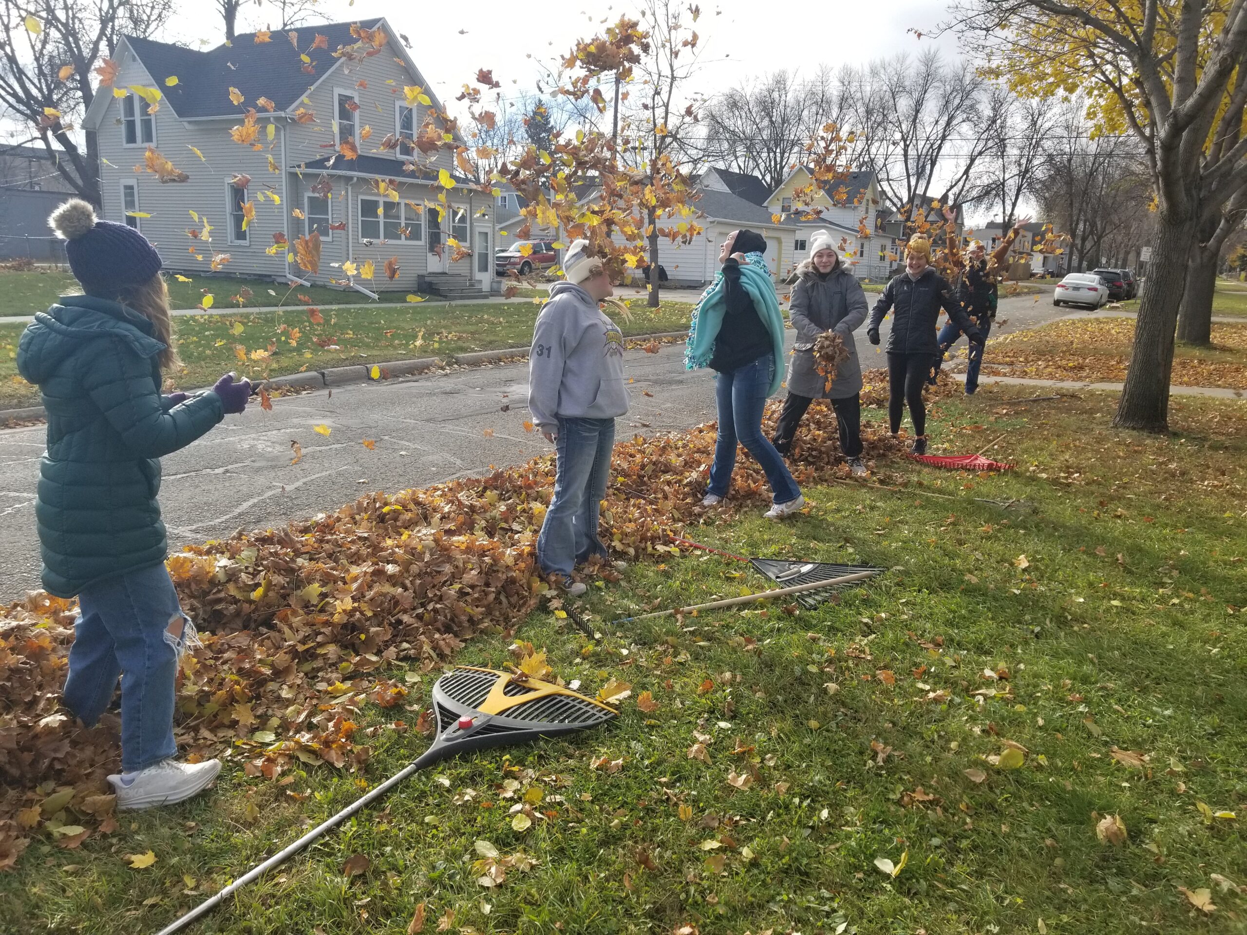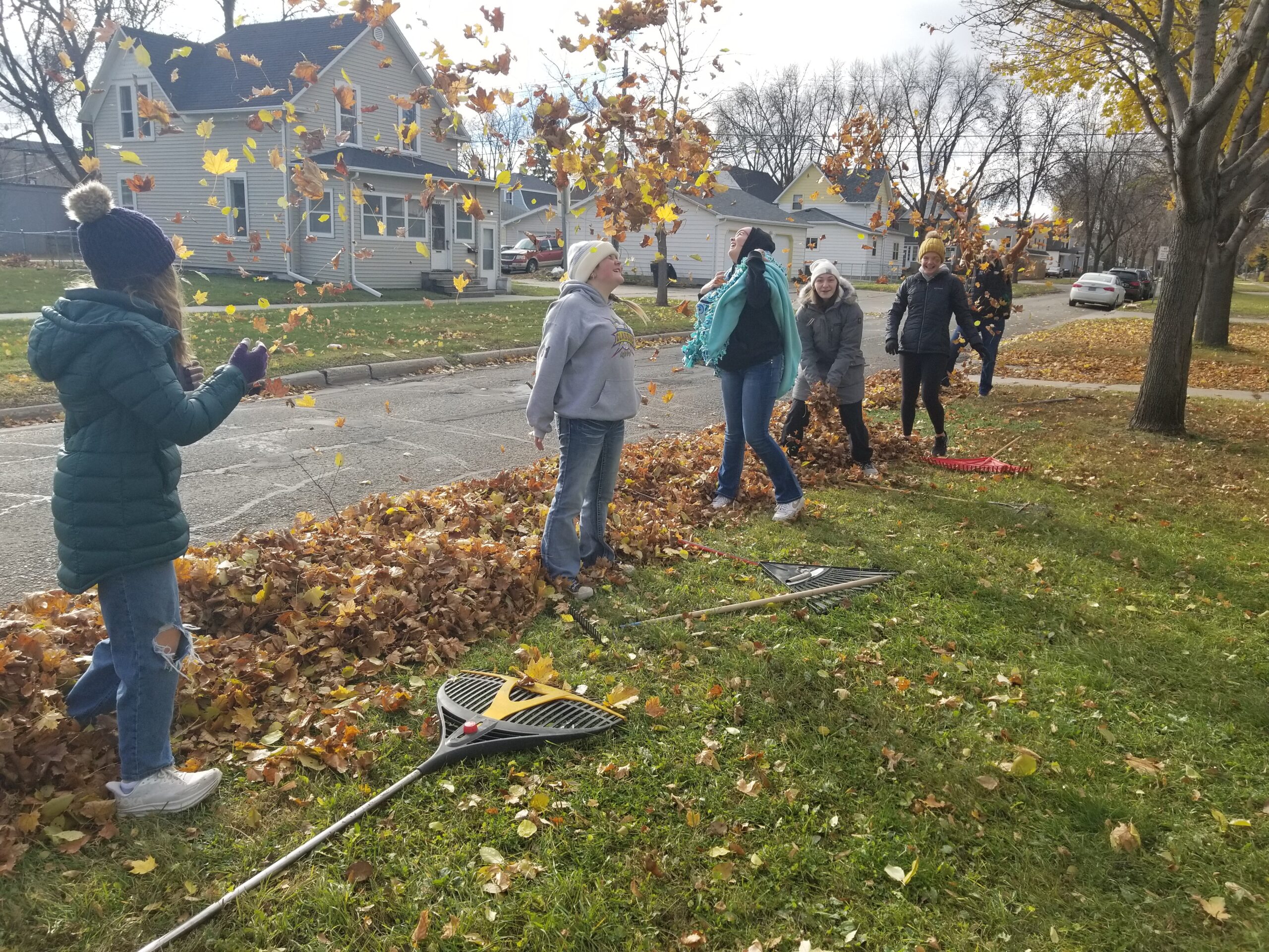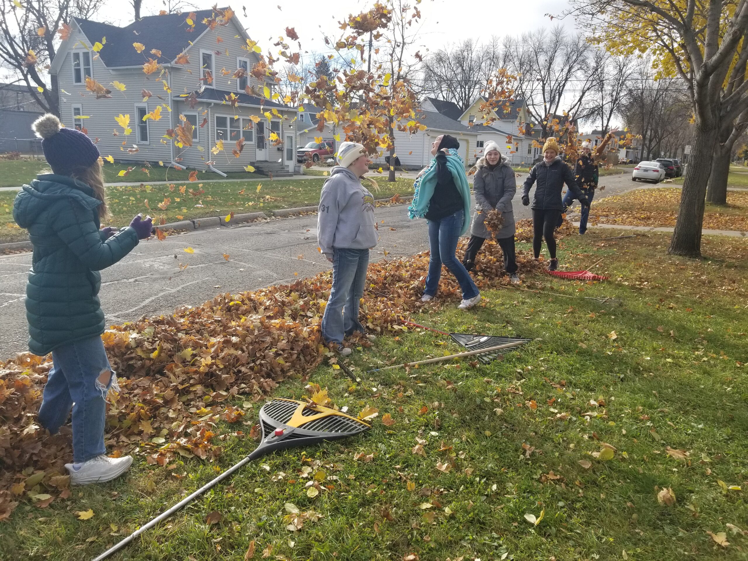 Veterans Day occurred on Nov. 11th and 23 youth spent it choosing to serve four known Veteran homes amongst many other citizen homes of unknown Veteran status. YFC, Grace Youth Group, and Thrive Youth Group all came together to live out the heart of Jesus by caring for those who were in need and first cared for us through their service. We spent time going from door to door to greet people, ask if we could rake their leaves (or help them with any other small projects they may have), and pray over them at the end. I witnessed youth enjoy taking steps of courage to ring doorbells, and I heard stories about youth who deeply touched the lives of those who were unable to do the labor themselves. We never know the impact we have on another person or how badly they may need it. Veterans have made years of impact with their service by helping America remain free, and with that freedom, we hope to inspire you and youth to choose it to serve others. Veterans, thank you for your service!