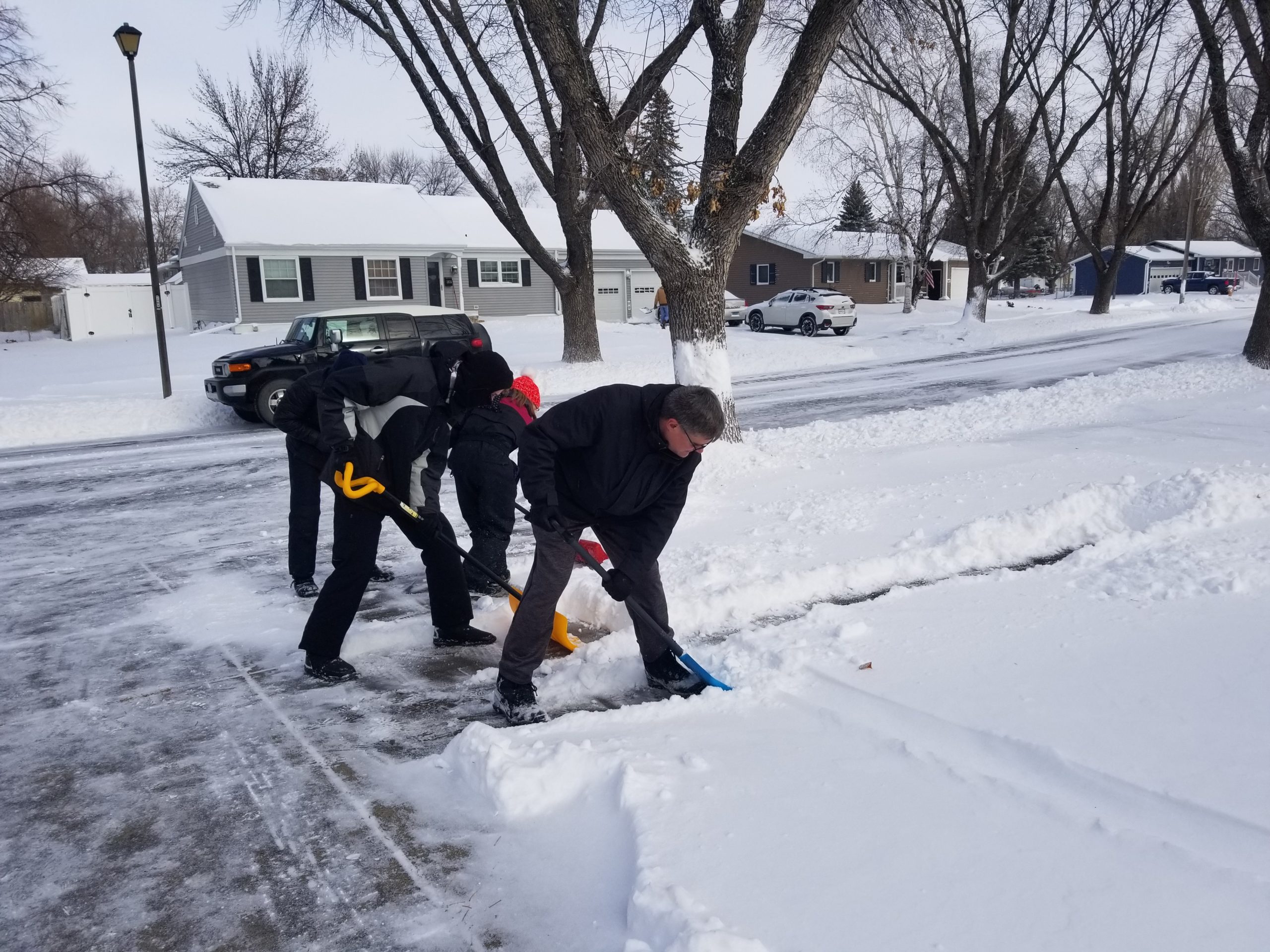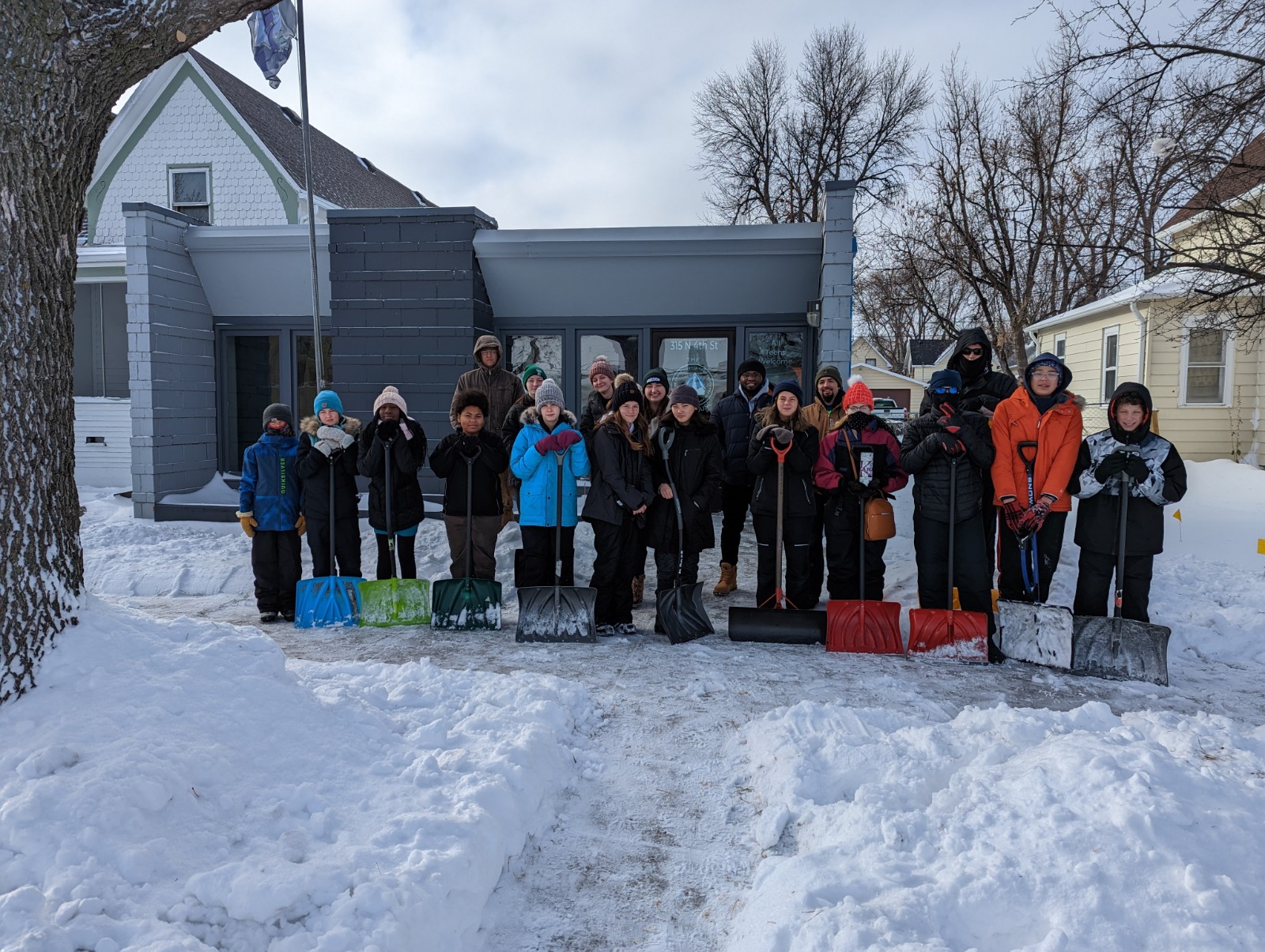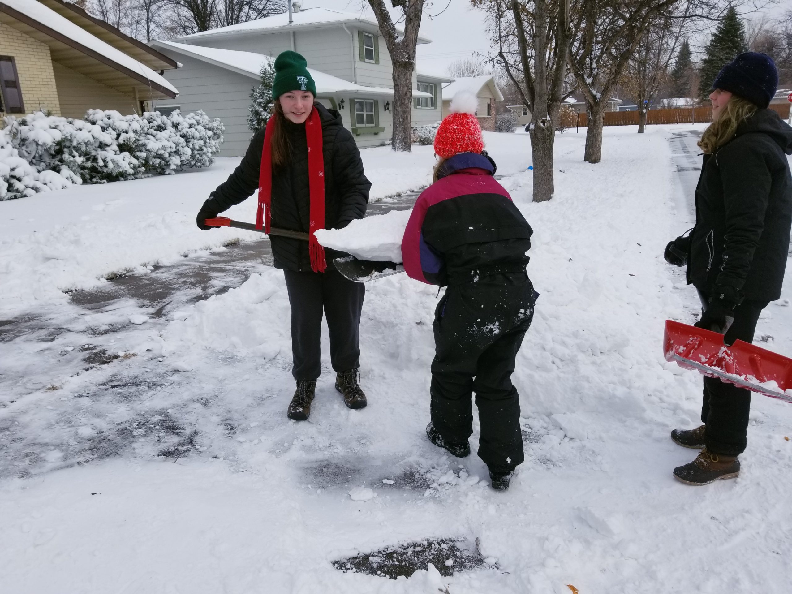 We spent the day off of school serving Veterans and community members! Many prayers were said to God requesting Him to bless the weather so we could continue with our plans to serve outdoors and thankfully, our prayers were answered! On Veterans Day, Youth For Christ, Freedom Church, Faith Community Church, and Grace Baptist Church came together to shovel driveways, front steps, and sidewalks of those that lived on 4th St N, 5th St N, and 10th Ave N in Grand Forks. Approximately 30 houses were reached in roughly three hours! We spent the remainder of the afternoon eating pizza at the Lighthouse, playing lots of games, and reflecting on the day. We chatted about what it was like to serve for PROJECT SERVE, why Veterans serve (we had a Veteran share his heart on this), and that Jesus serves us because He loves us! One of my favorite stories from the day that I had heard was about a middle school student who was serving down 4th St N. His "shoveling team" reached the home of one of his friends and he persistently knocked on his friend's door until he answered. He not only shoveled his friend's walkway, but he also invited his friend to join him in serving others and then later celebrate over pizza! It was awesome to hear of a middle school student empowering his friend to help others alongside of him! Check out the photos below to see all the fun we had during PROJECT SERVE!
