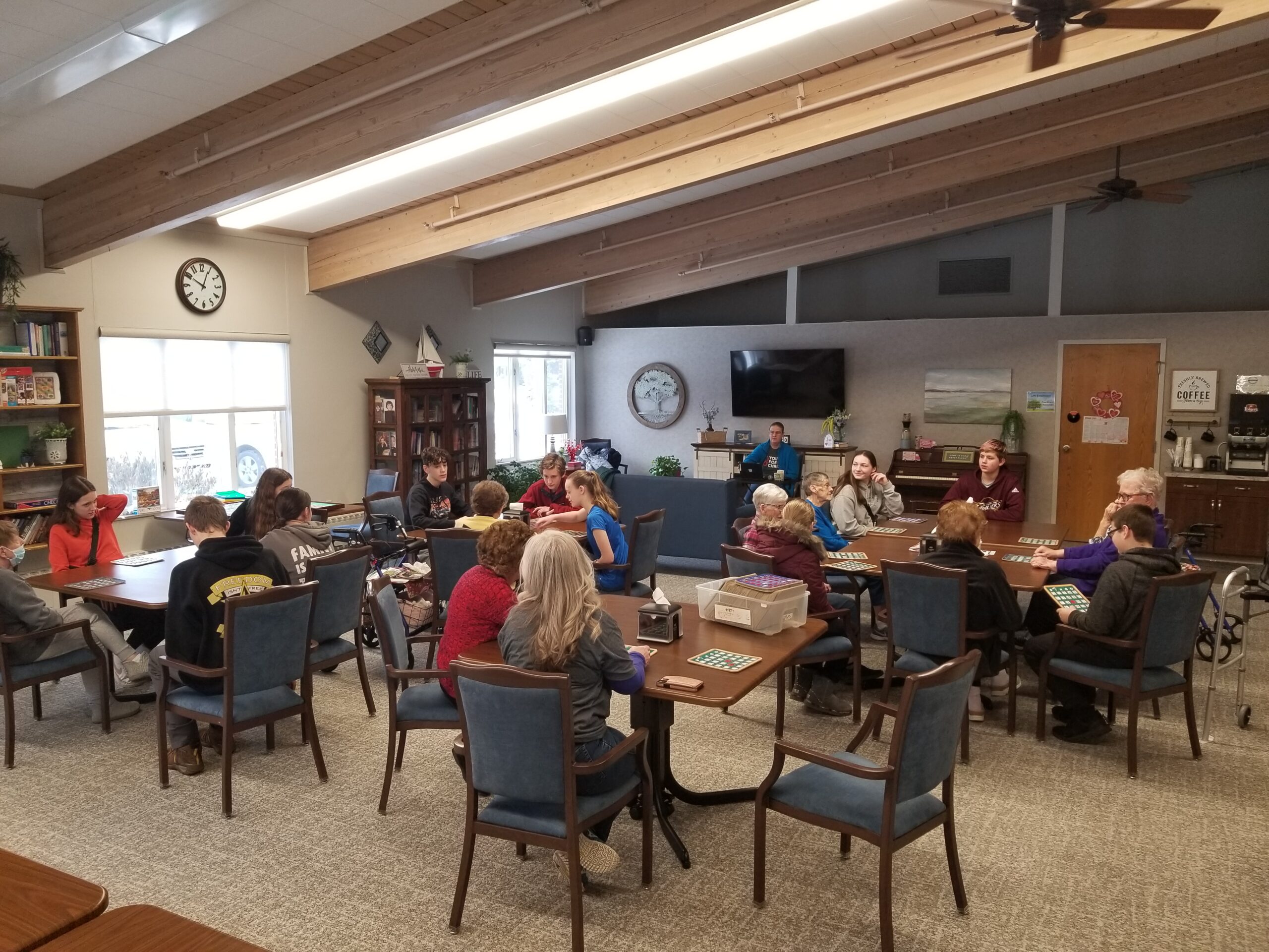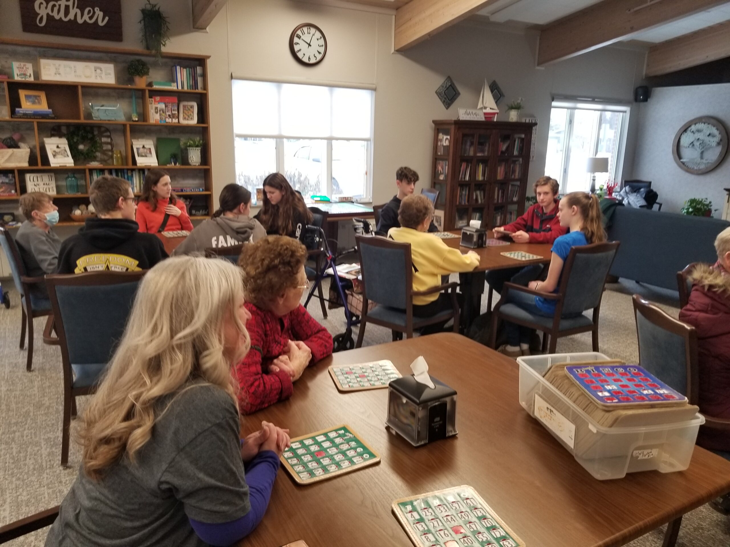 This whole month we have been talking about 3 stories at Campus Life Clubs: God's Story, My Story, and Your Story. Stories matter because people matter. First, God matters SO MUCH! He is our Creator who made us out of love, He is our Savior who gave His life for all of us when we sinned against Him, and He is the one who transforms us when we choose to believe in Him as our Lord and Savior. God changes our stories for the better. Second, people matter! Every person, young or old, is God's most prized creation. Matthew 6: 19 - 21 talks about storing our treasures in heaven. I often think about how our treasure is Jesus, and also, other people. When the people in our lives believe and follow Jesus, we get to spend eternity together in heaven with Him! So, relating this all to our event at Tufte, 11 teens came together to share time and conversations with residents over Bingo! I watched teens laugh and grow and say they would do it again! Time is a valuable thing, and when we surrender it to Christ, it can be life changing. My heart was so full as I drove away from Tufte and thought about all I witnessed. I imagined what Jesus would say to me and all I could think about was, "This is what it's all about, relationships." The most important thing we can do in our relationships is not be afraid to invite others into a relationship with Jesus through our actions, words, and time. One of our volunteers was asked by a resident what her life advice would be, and she told him, "To know and love the Lord in your life." The resident looked at her and quietly remarked, "that's some good advice." See pictures below!