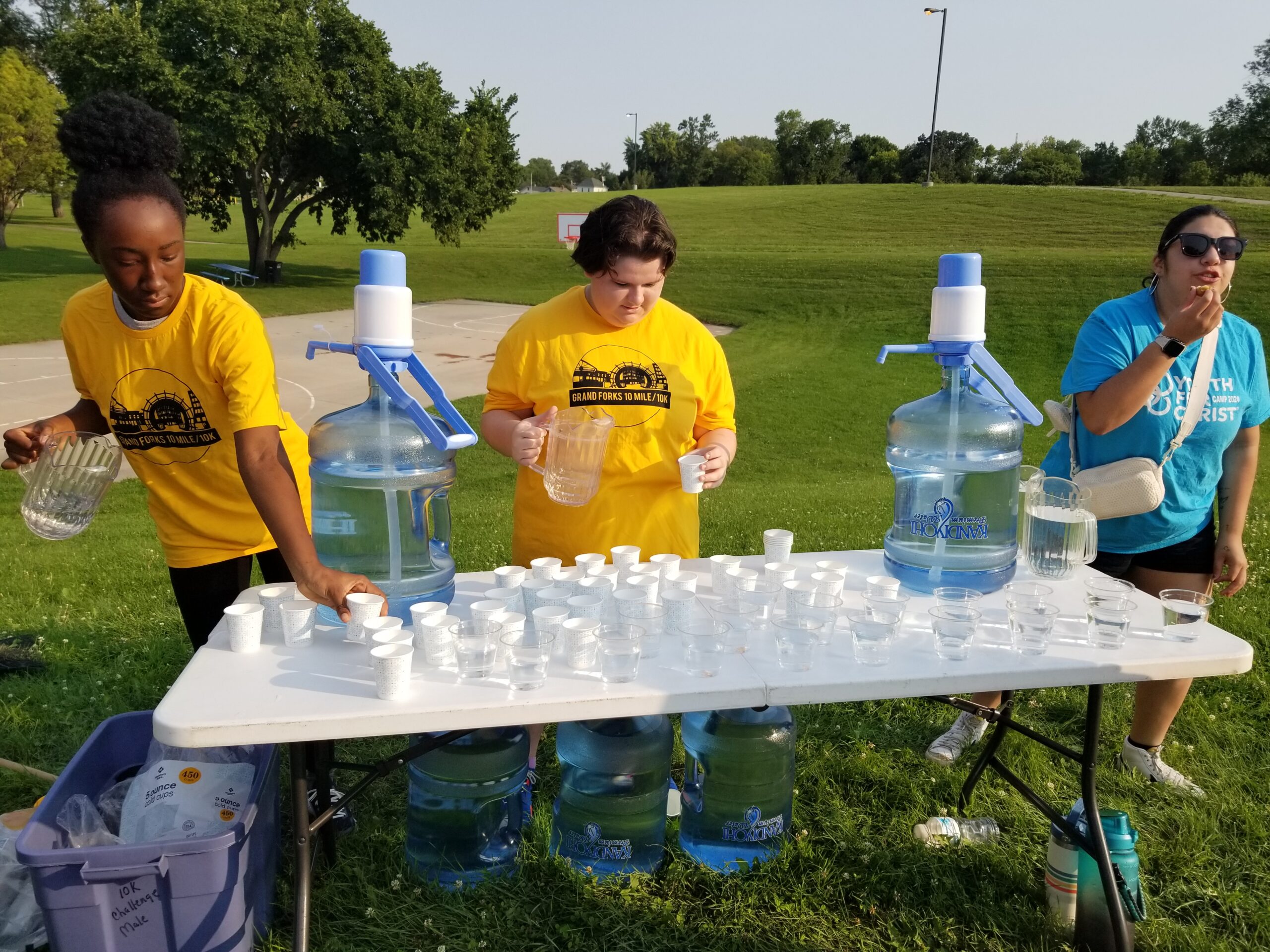 There is a joy that can be found when we give ourselves away to others. There is also a hope that can be built when we begin to believe that we have a future. Lastly, loneliness disappears when we come together in authentic relationships to serve others. I remember a couple weeks ago, one of our youths had asked me, "What are ways I can volunteer and also build a resume for my future?" Not every youth has an easy time with school or even believing in themselves. I was so glad that we could be a part of this youth's life, and believe in who God has made him to be and His plans for him; I am glad we could encourage, guide, and be someone that this youth could trust. This youth along with 8 others volunteered at the GF Run 5k on Friday, Aug. 23rd to provide water to racers and encourage them as they ran by. This group also decided to go one step further and help other volunteers clean up after the race was over. We provide opportunities like this because Jesus calls us to serve others in His love and truth that are around us. We provide opportunities like this because we believe that anyone can serve, and that God has a plan for each of our lives. We provide opportunities like this because God uses them to open up our hearts to Him and provide healing to us and others. Thanks to all who volunteered for this event!